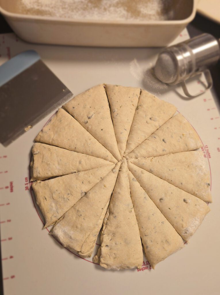 - Mit dem Teigschneider oder dem Nylonmesser in 12 Stücke teilen (wie bei einer Pizza)