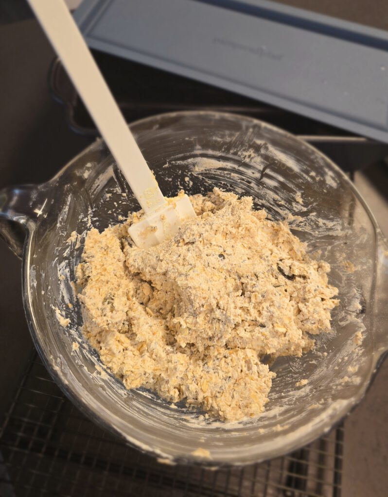 - Alles gut vermengen, zuerst mit einem Schaber, dann mit den Händen