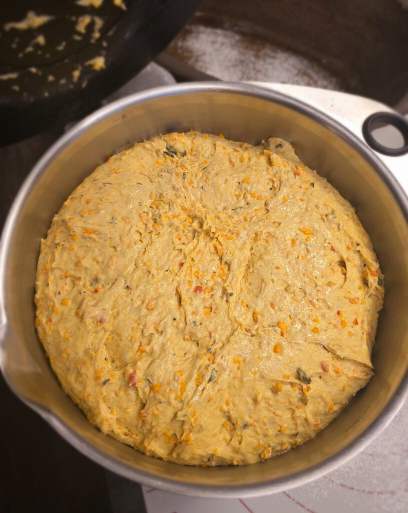 - Teig in die mittlere Edelstahlschüssel geben und 1-1,5 Stunden ruhen lassen