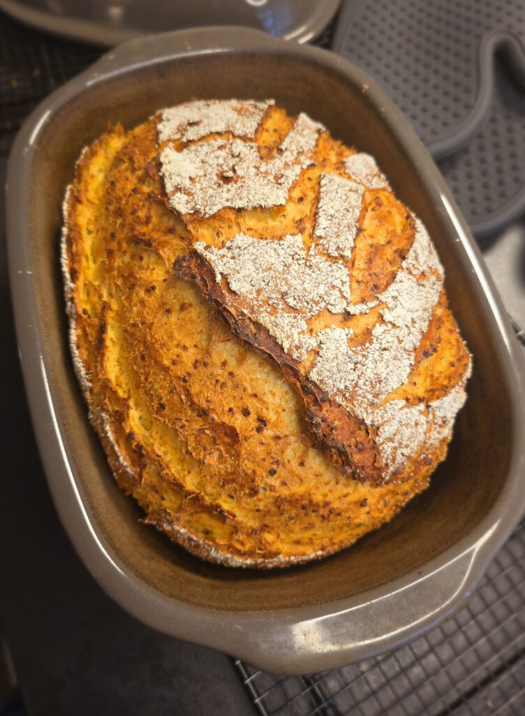 - Nach der Backzeit das Brot direkt aus dem Ofenmeister auf ein Kuchengitter stürzen und auskühlen lassen