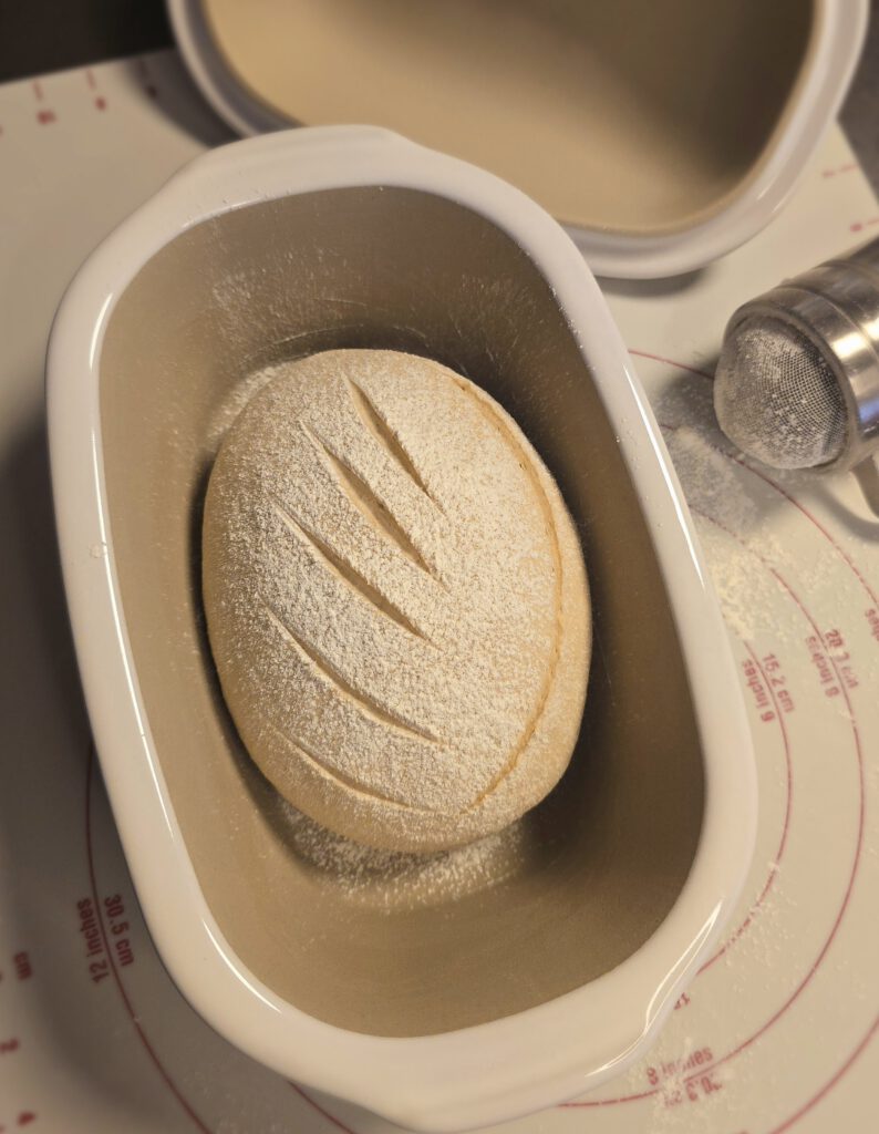 - Teig in den kleinen Zaubermeister legen, bemehlen und einschneiden