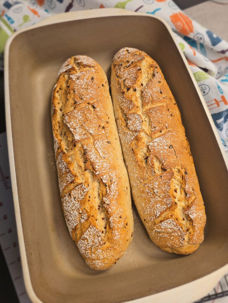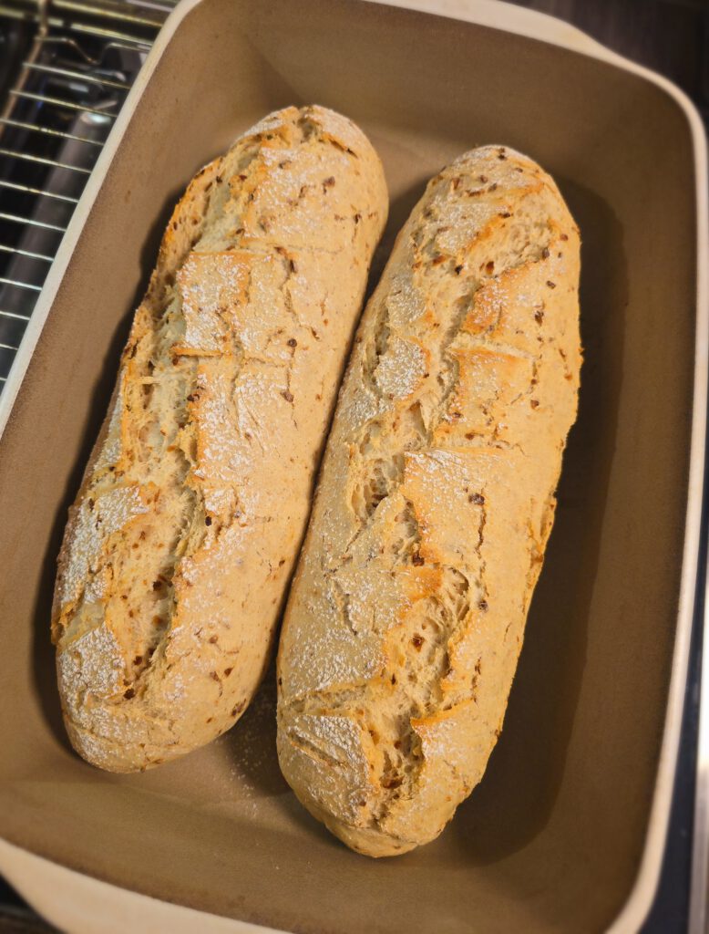 - Beide Mehlsorten, Öl, Salz, Kräuter und Röstzwiebeln dazu geben3 Min. / Knetstufe350 gr. Dinkelmehl 630er, 170 gr. Dinkelmehl 1050er, 12 gr. Salz, 1 TL ital. Kräuter (getrocknet), 1 EL Olivenöl, 50 gr. Röstzwiebel
