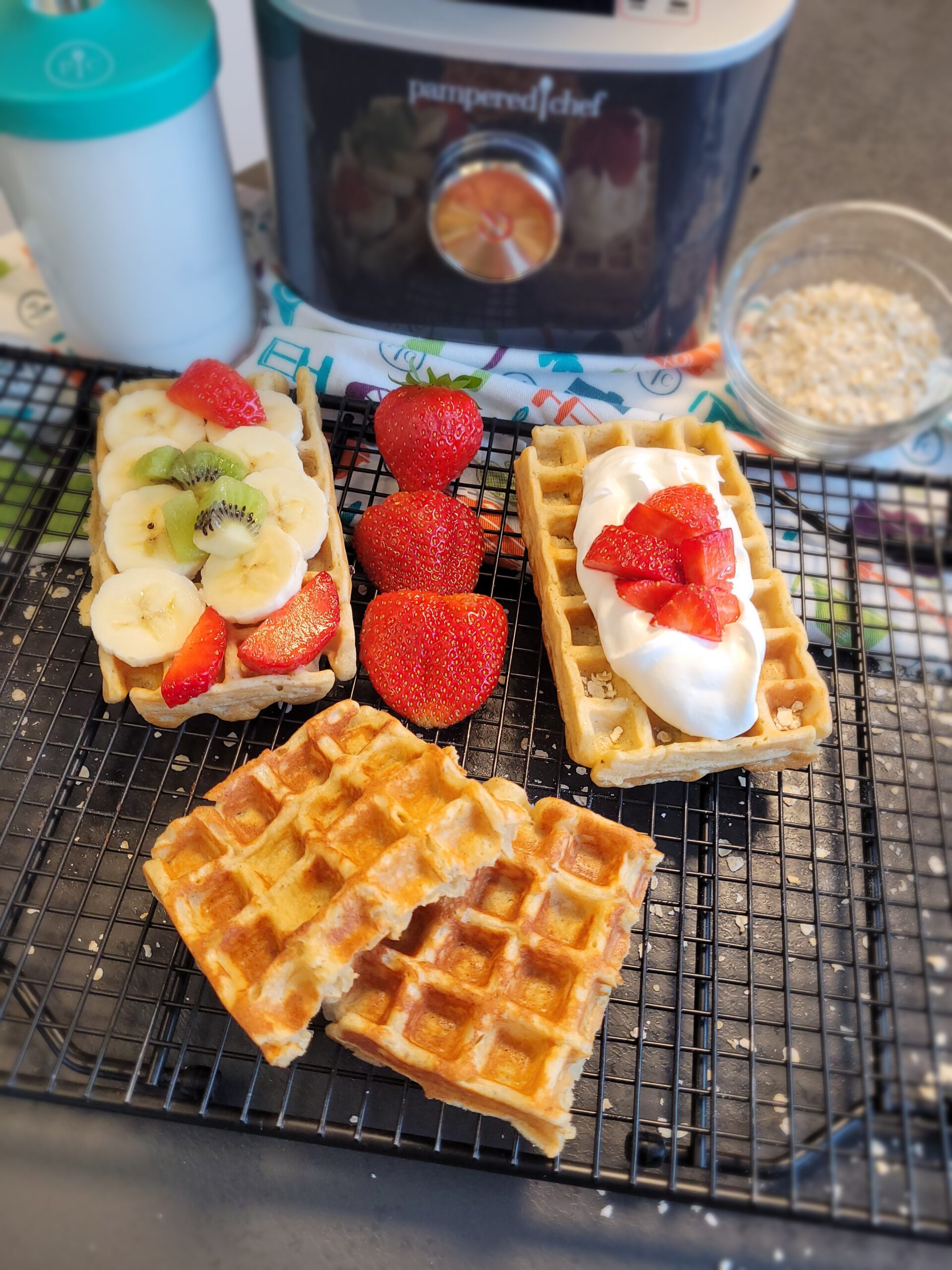 - Die Waffeln zusammen mit der Cremefine Creme und frischen Früchten servieren