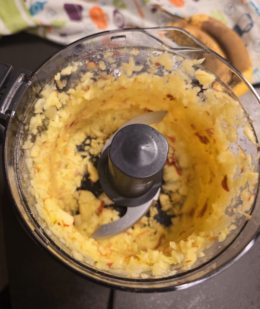• Apfel entkernen und in Stücken in den Elektrischen Multi-Zerkleinerer "Up & Down" geben