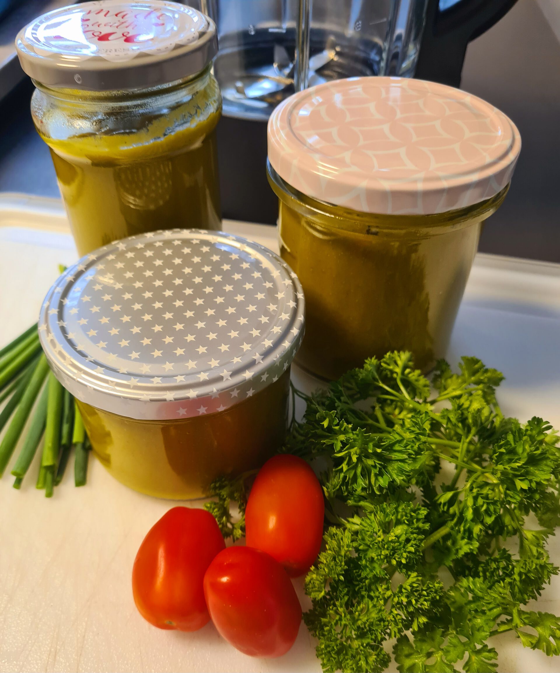 - Die Gemüsebrühe noch heiß in sterile Gläser abfüllen