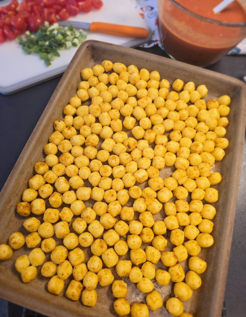 - Gnocchis auf dem großen Ofenzauberer verteilen und in den Backofen stellen, auf einen Gitterrost unterste Schiene. Backzeit etwa 15-20 Minuten