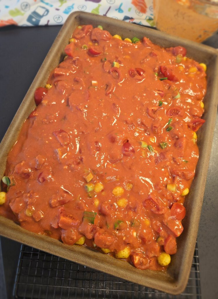 - Nach der Backzeit heraus nehmen und 5 Minuten stehen lassen