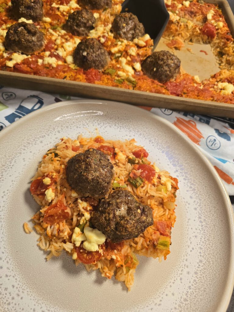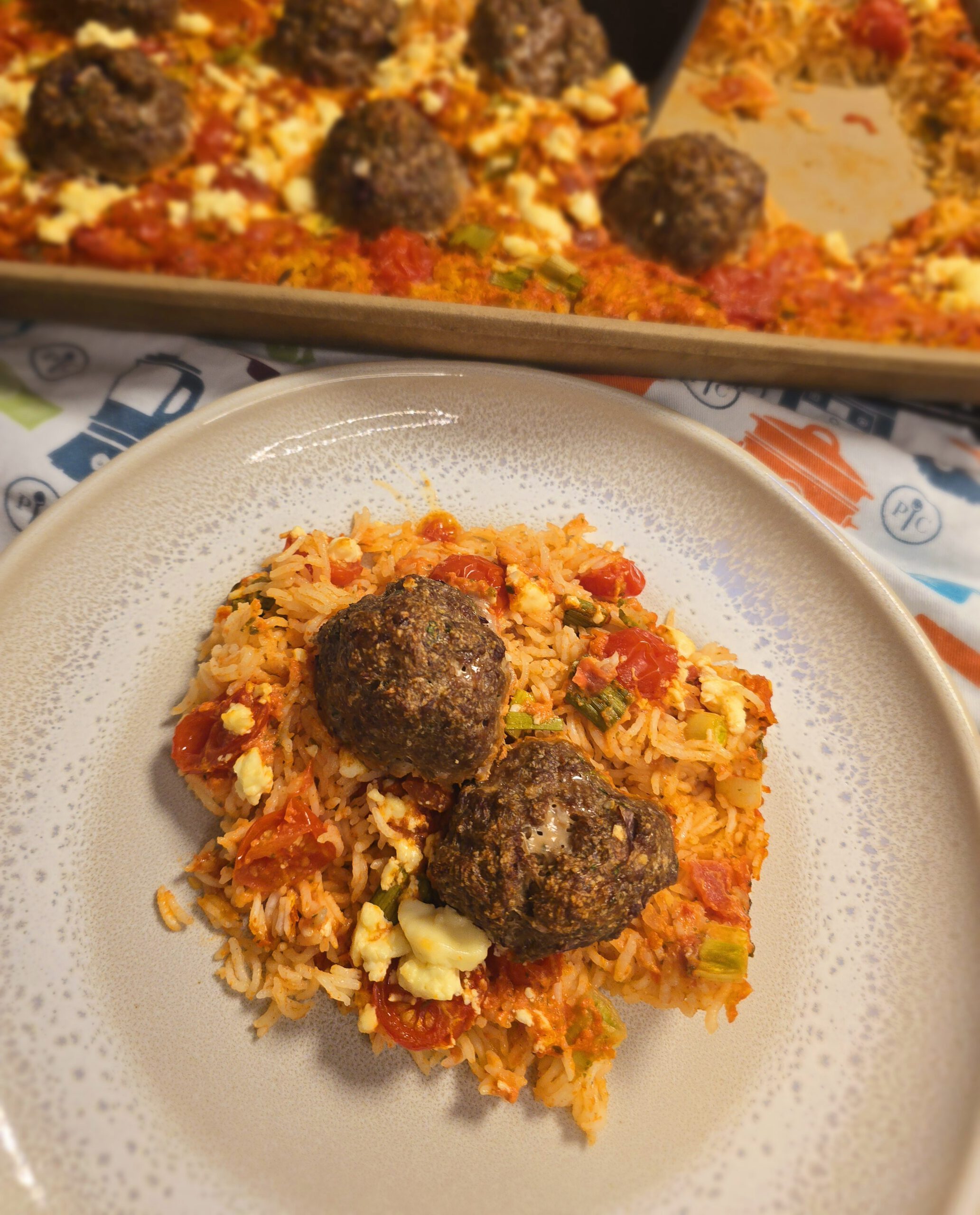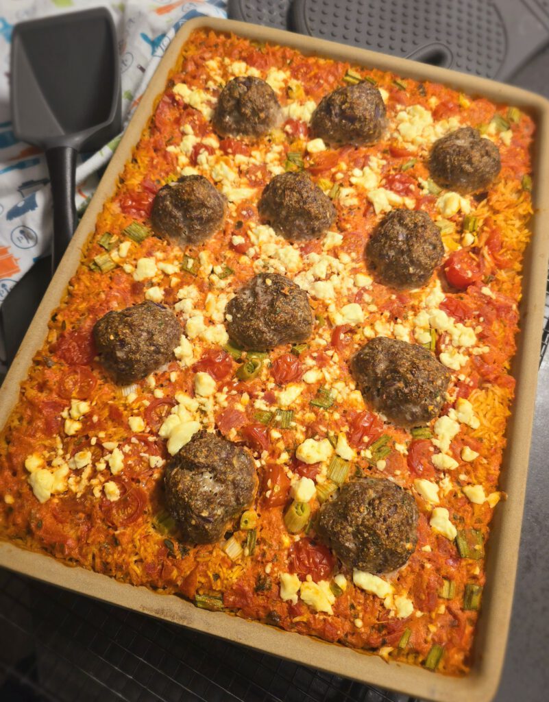 Reisblech mit Hackbällchen