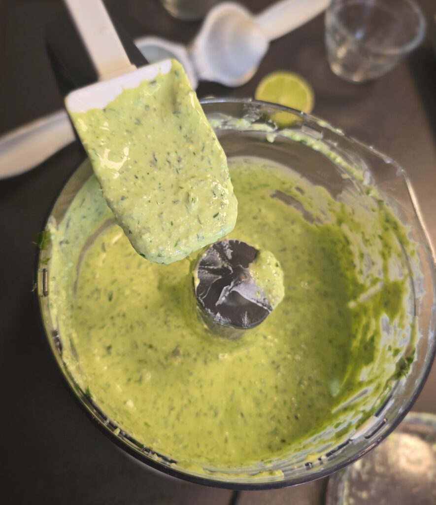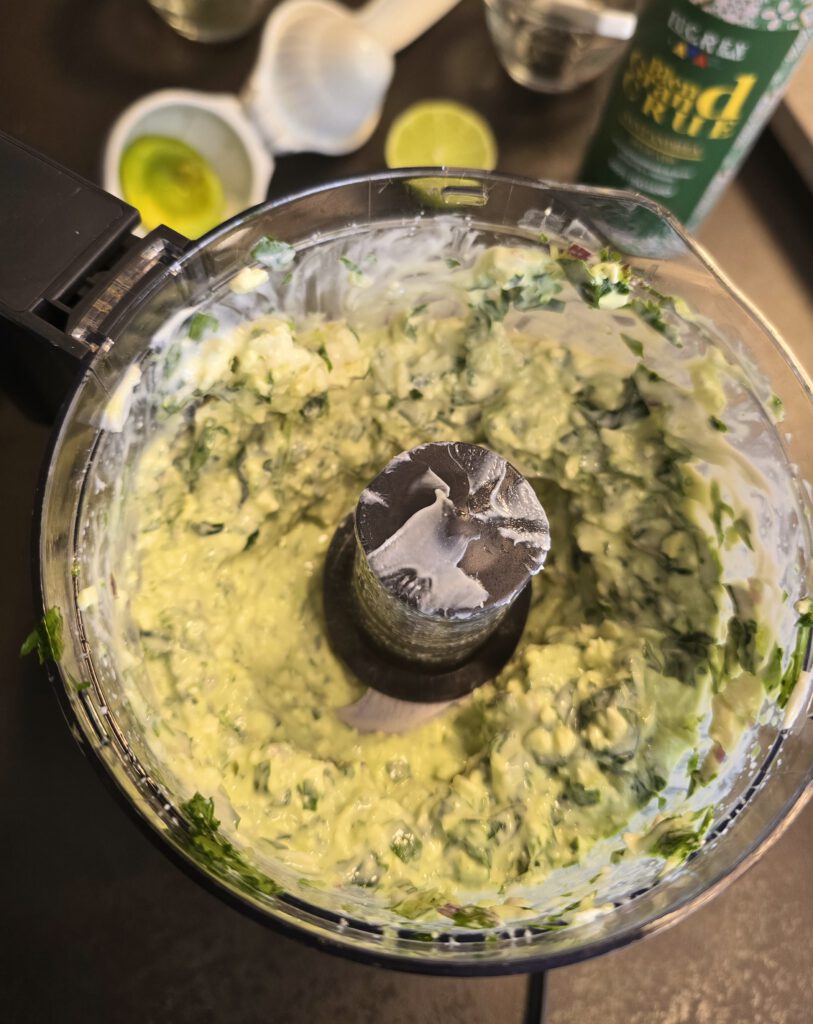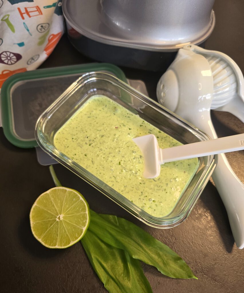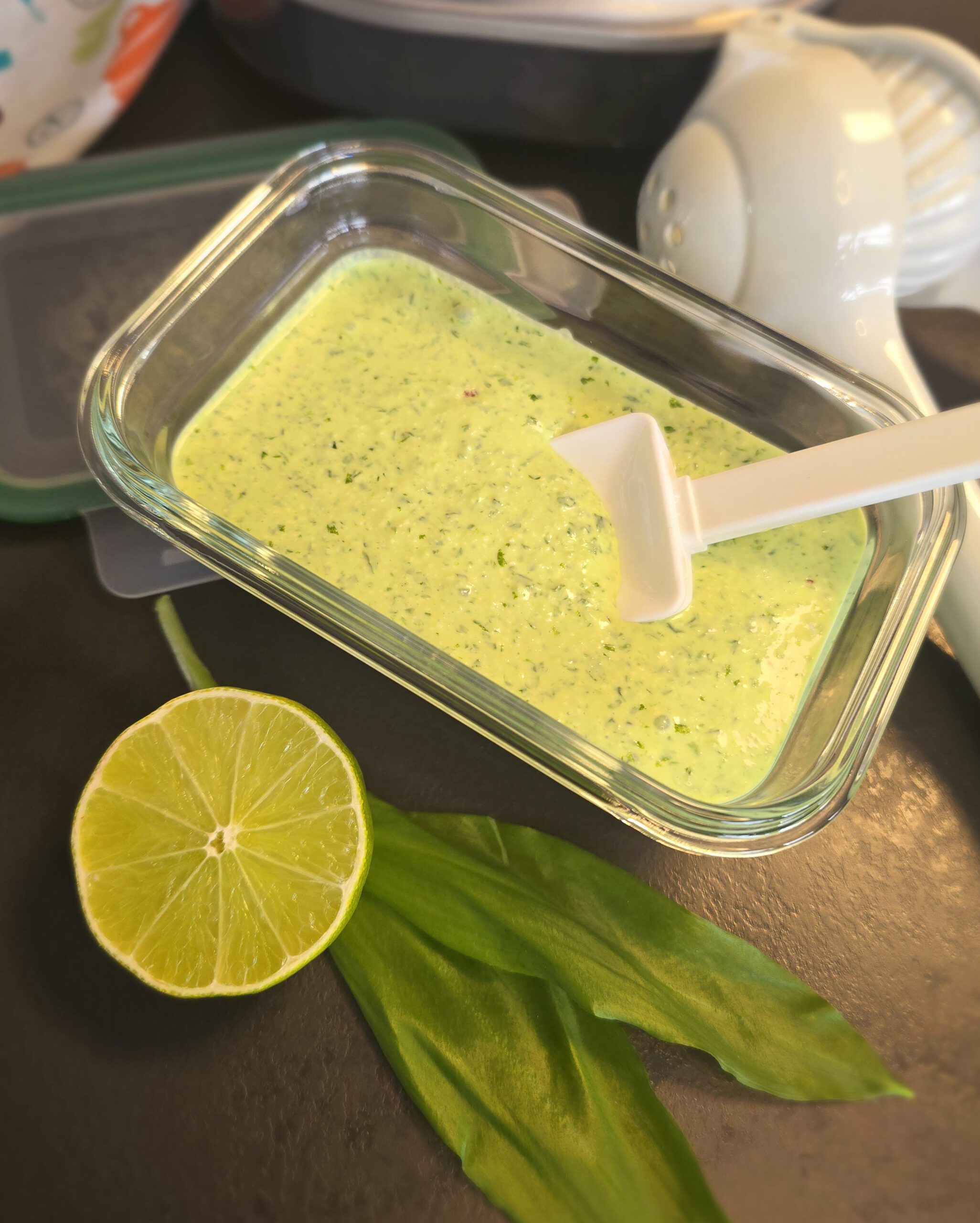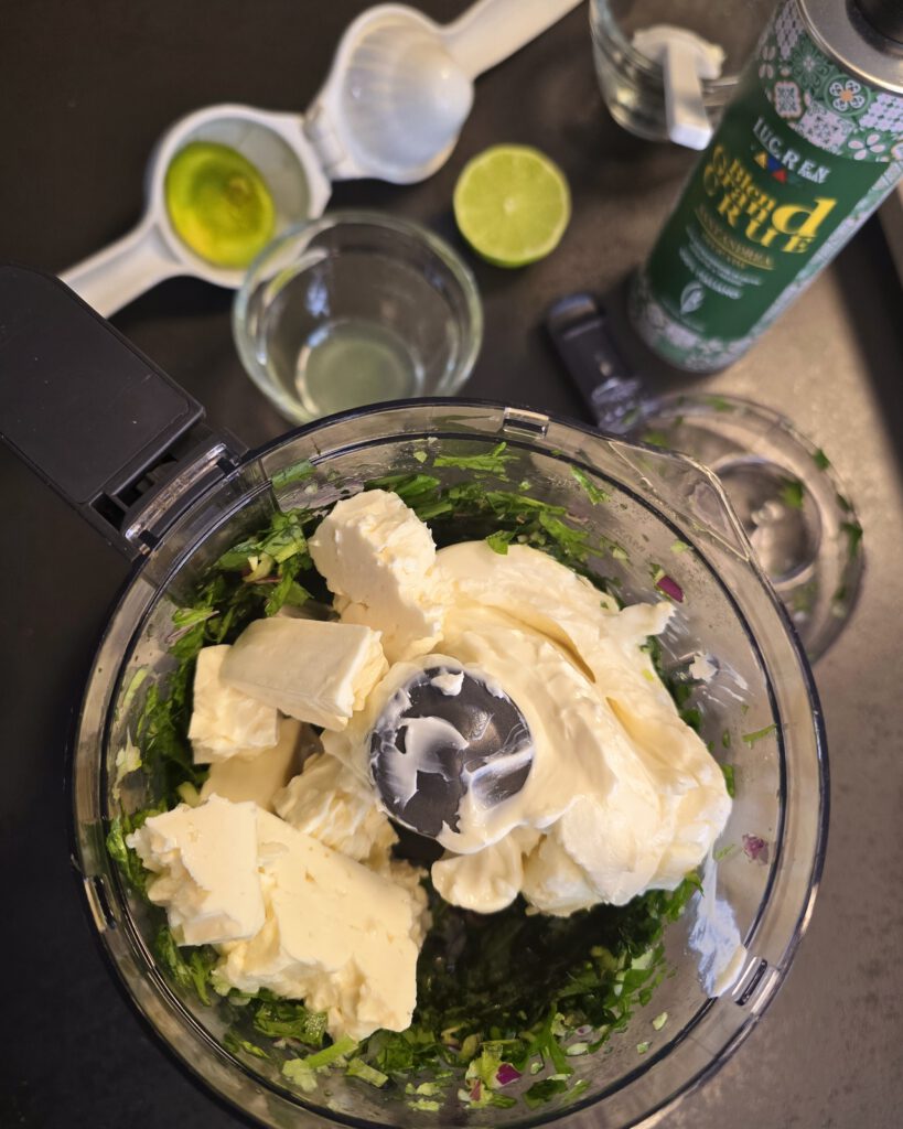 - Frischkäse und Feta dazu geben.Limette mit der Zitruspresse pressen und einen TL Limettensaft dazu geben100 gr. Feta, 150 gr. Frischkäse balance, 1 TL Limettensaft