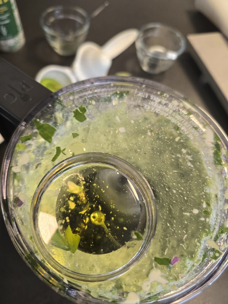 - Über die Deckelöffnung 1 EL Olivenöl dazu fließen lassen1 EL Olivenöl