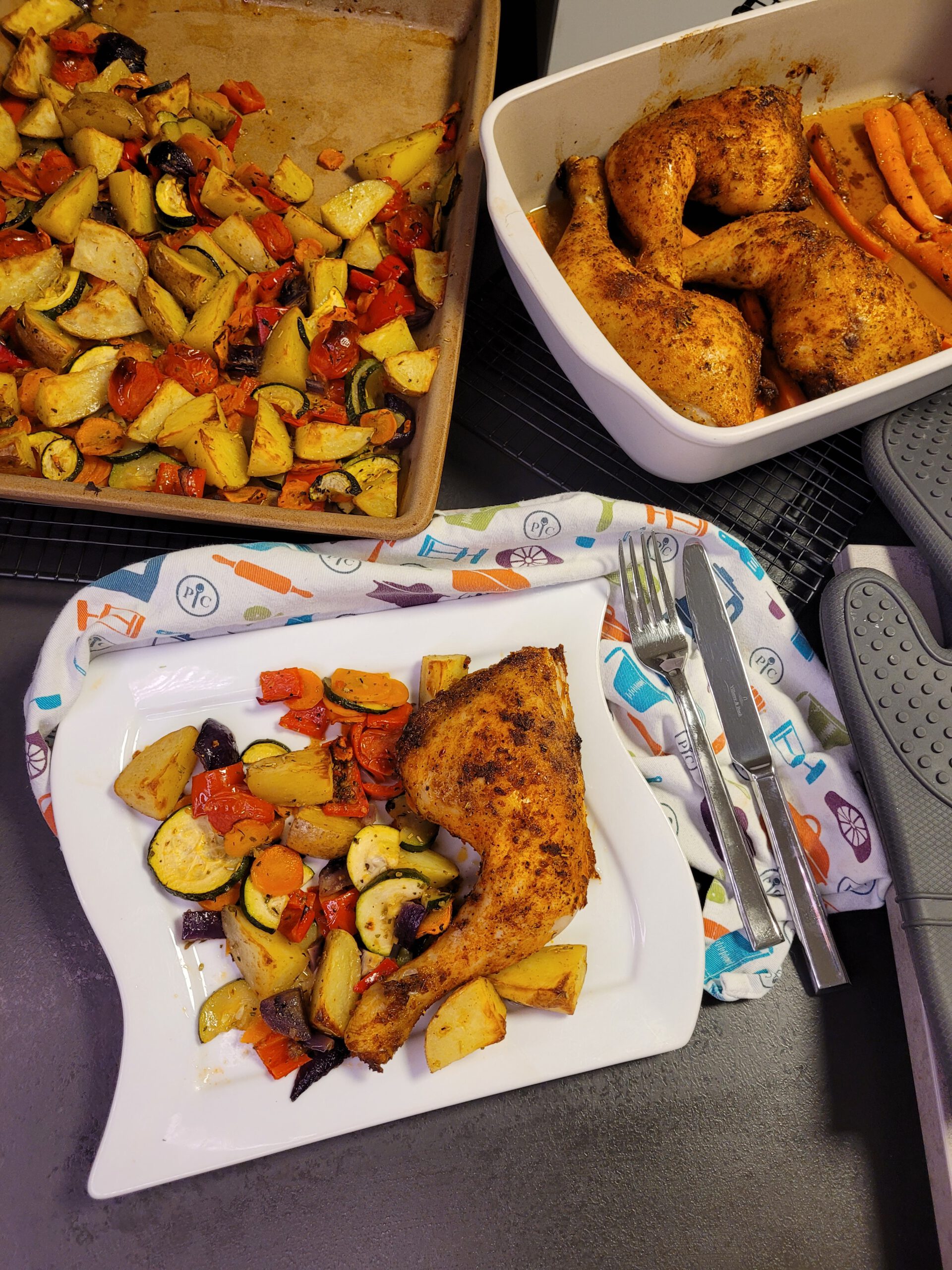 Hähnchenschenkel mit Gemüse und Kartoffeln