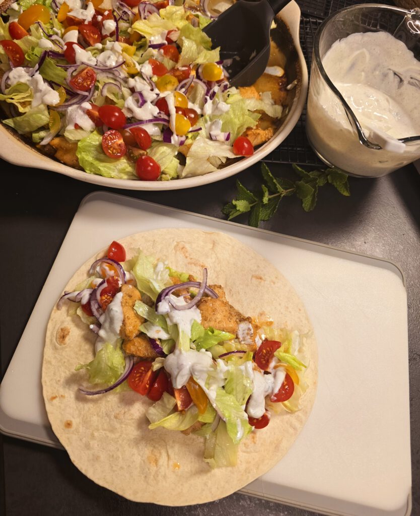 - So kann nun alles zusammen serviert werden und jeder kann sich seinen Wrap nach Wunsch befüllen