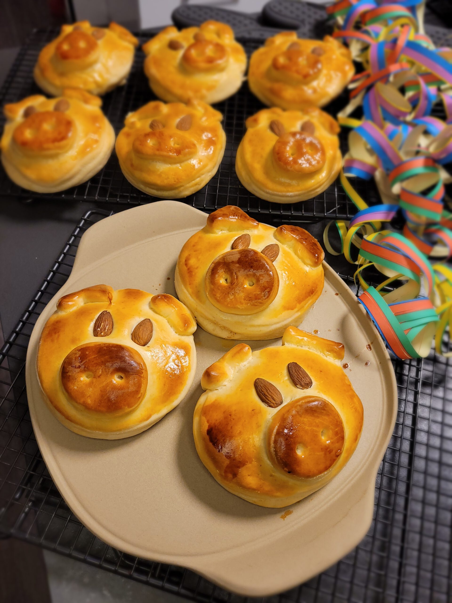 - So mit dem kompletten Teig verfahren, dieser reicht rund für 9 Schweinchen