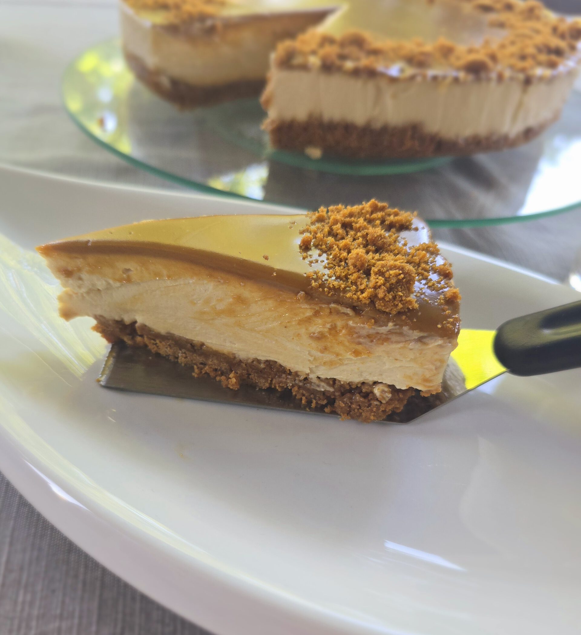 - Die restlichen Kekse mit der Hand grob zerkleinern und den Kuchen damit dekorieren5 Karamellkekse
