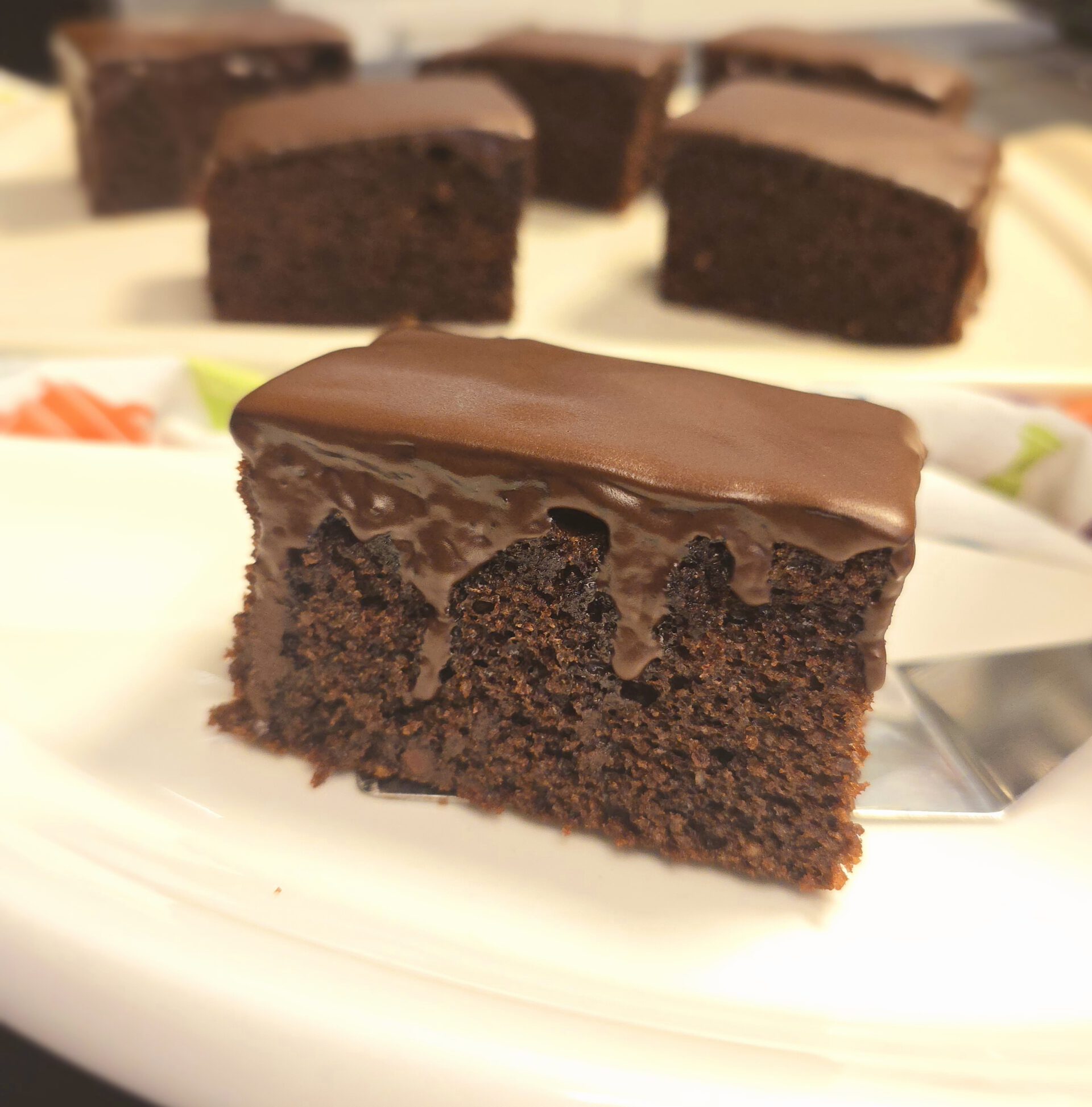 - Schokoguss schmelzen und Kokosfett einrühren.den Schokoguss auf den geschnittenen Kuchen geben250 – 300 gr. Schokoguss Zartbitter, 20 gr. Kokosfett