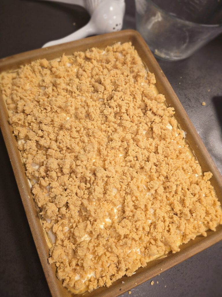 - Streusel in die große Nixe umfüllen und mit den Händen nochmals nachkneten, bis schöne Streusel entstehen