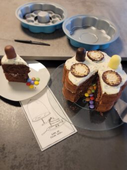 - Überraschungskuchenform mit den gewünschten Mulden auslegen und gut einfetten