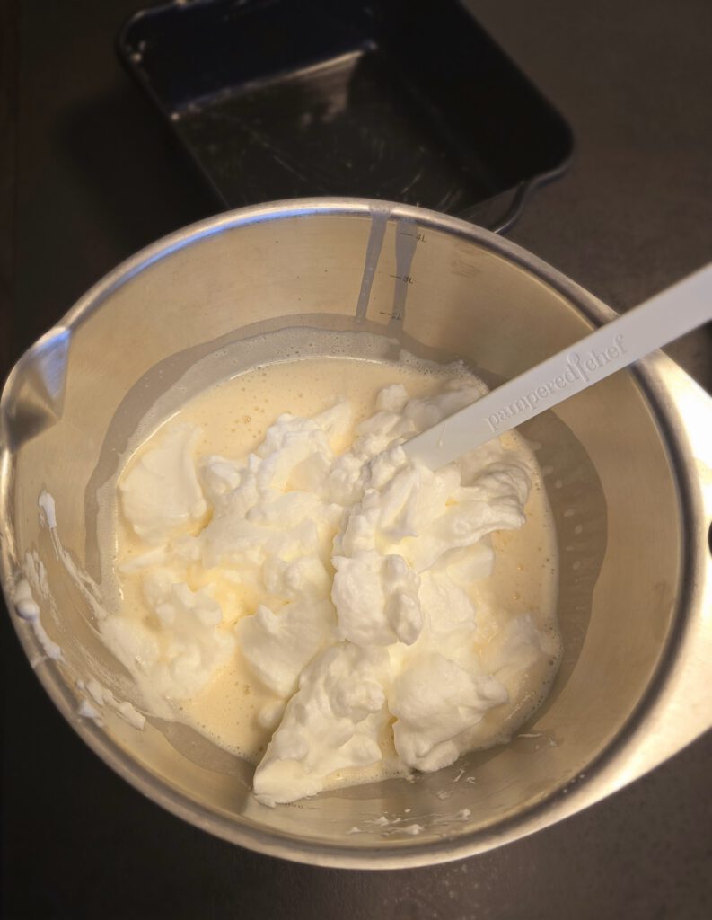 - Mit einem Schaber vorsichtig unterheben (Klümpchen erwünscht)