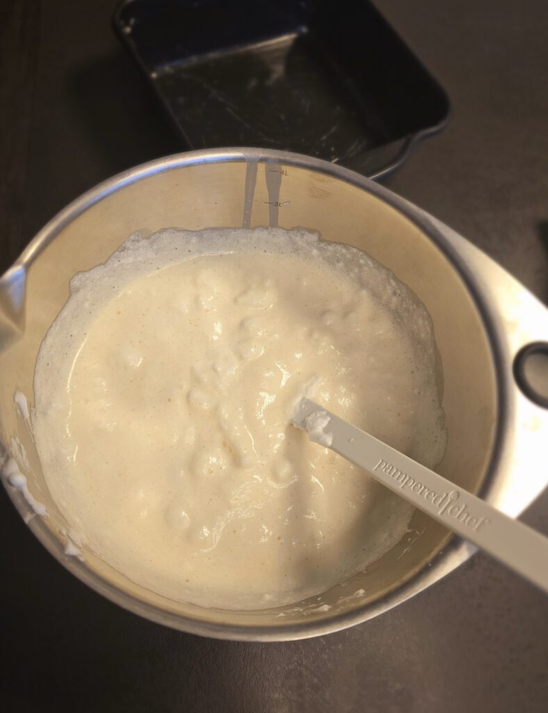 - Eisschnee zu dem Teig in der Edelstahlschüssel geben