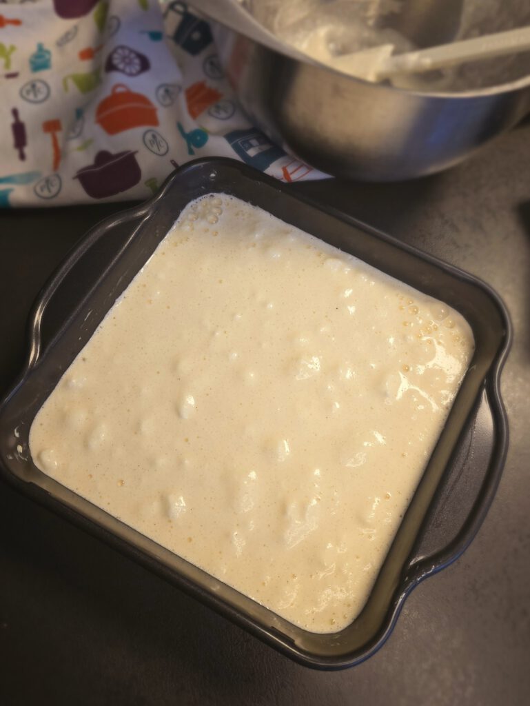 - Teig in die Backform schütten