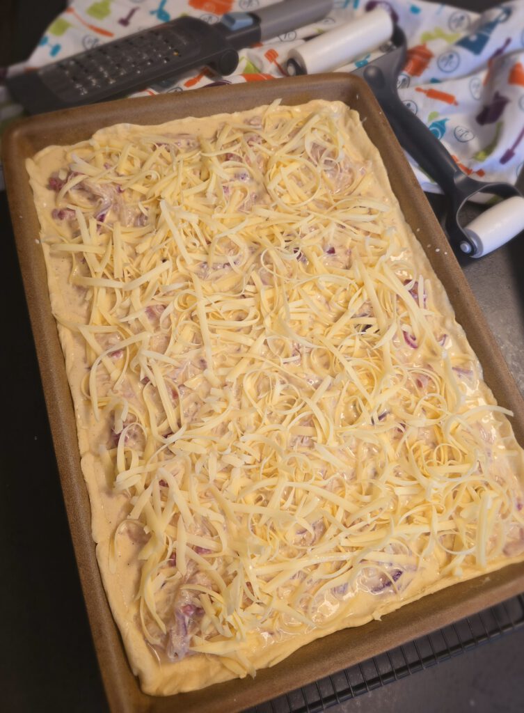 - Geriebenen Käse darüber verteilen150 gr. geriebenen Käse