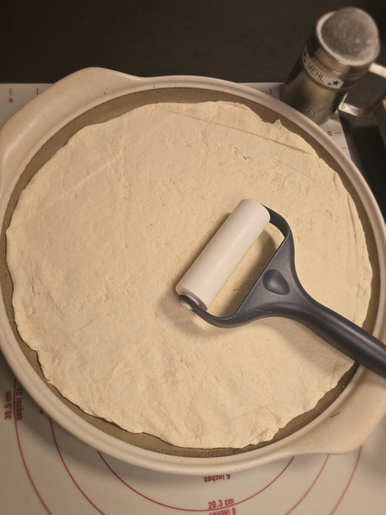 • Teig auf dem Stein ausrollen