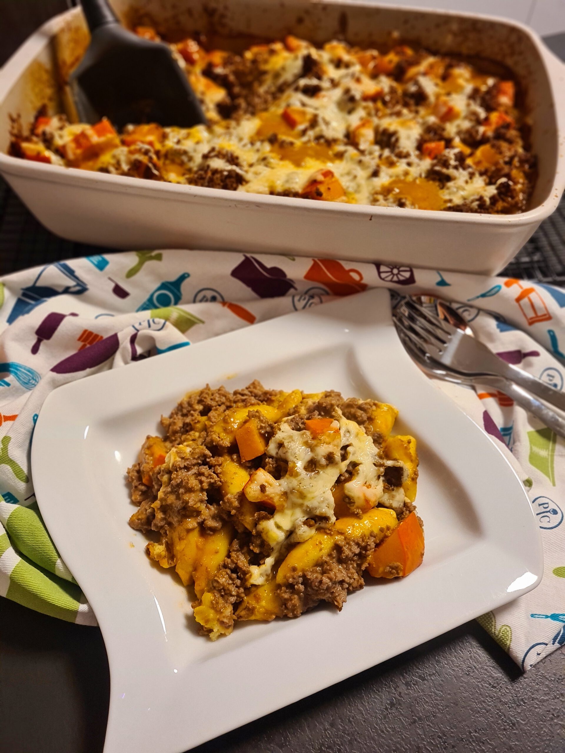 Kürbis-Hackfleisch-Schupfnudelauflauf