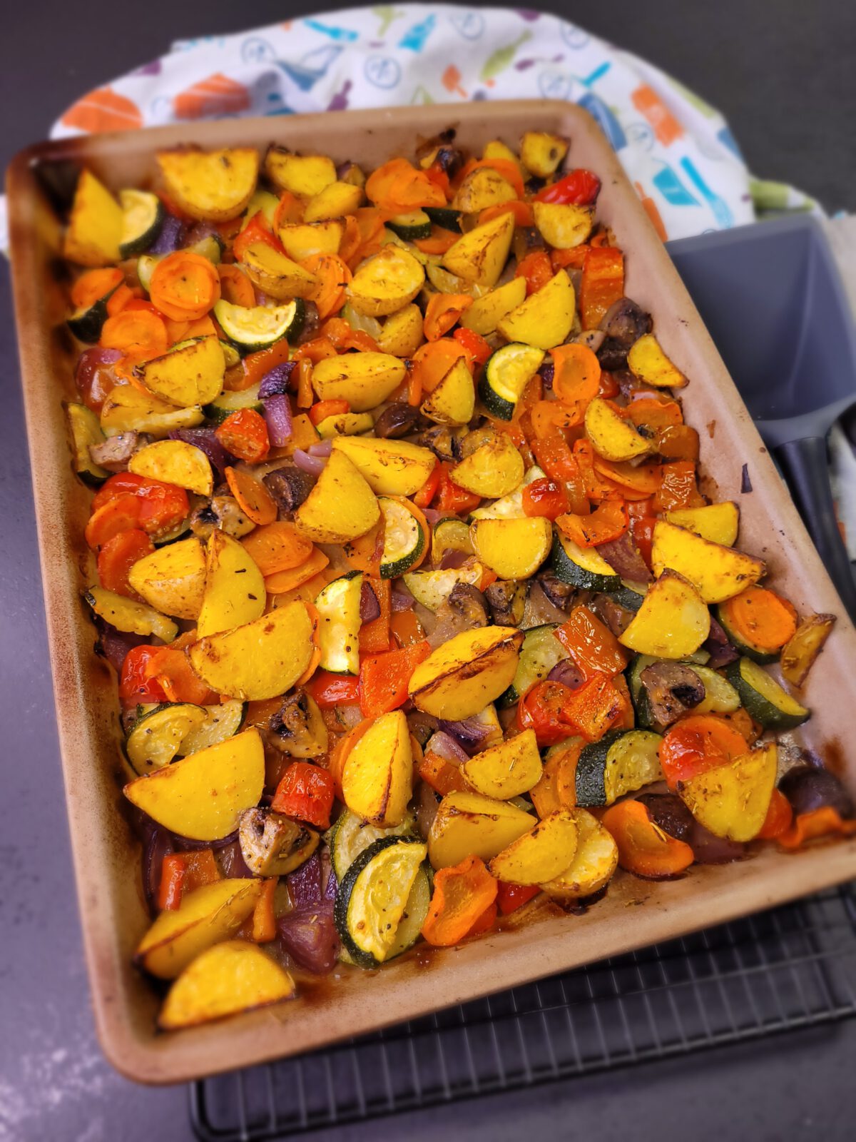 - Gemüse mit Olivenöl und Gewürzen nach Wunsch vermischen, z.B. Italian Allrounder und Gemüse AllrounderOlivenöl vermischt mit Gemüse Allrounder