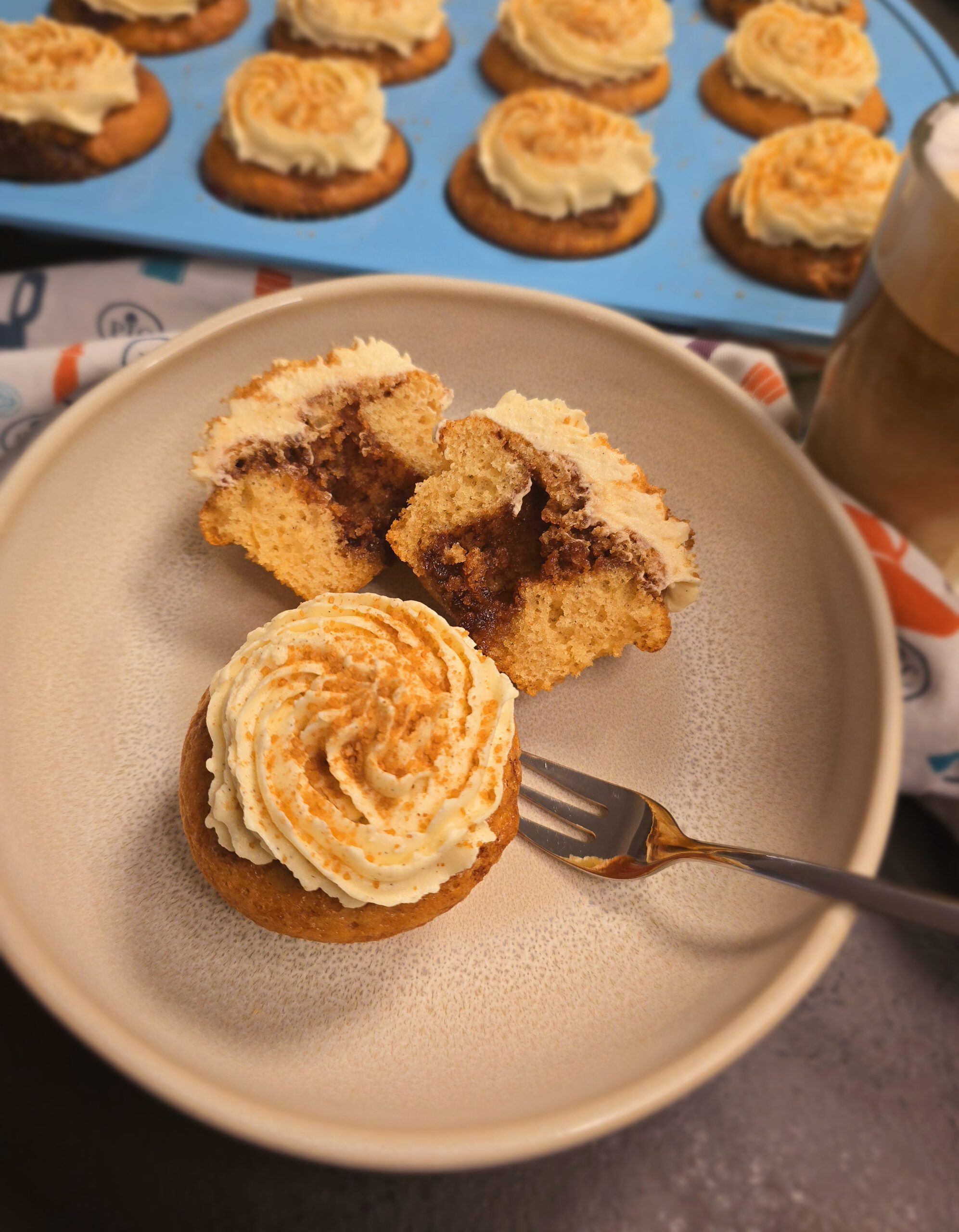 • Für den Zimt-Swirl die flüssige, leicht warme Butter mit dem Zimt und dem braunen Zucker verrühren
