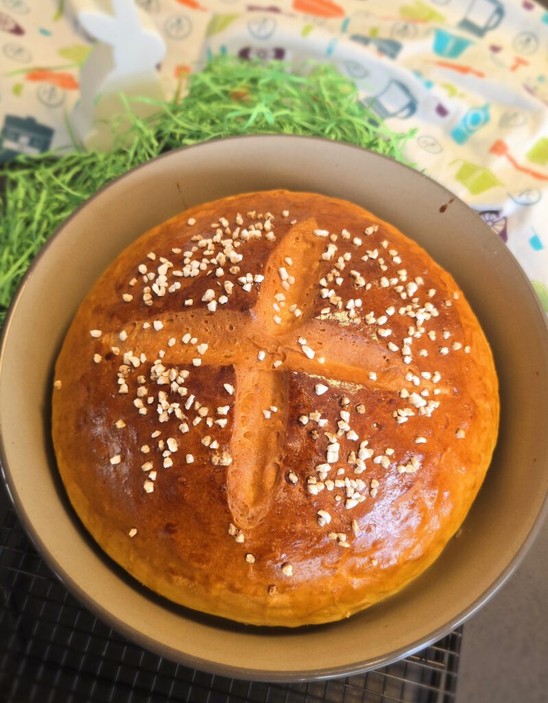 Wichtig! Wenn ihr das Osterbrot auf einem größeren Stein backt, achtet bitte auf die 2/3 Belegung.