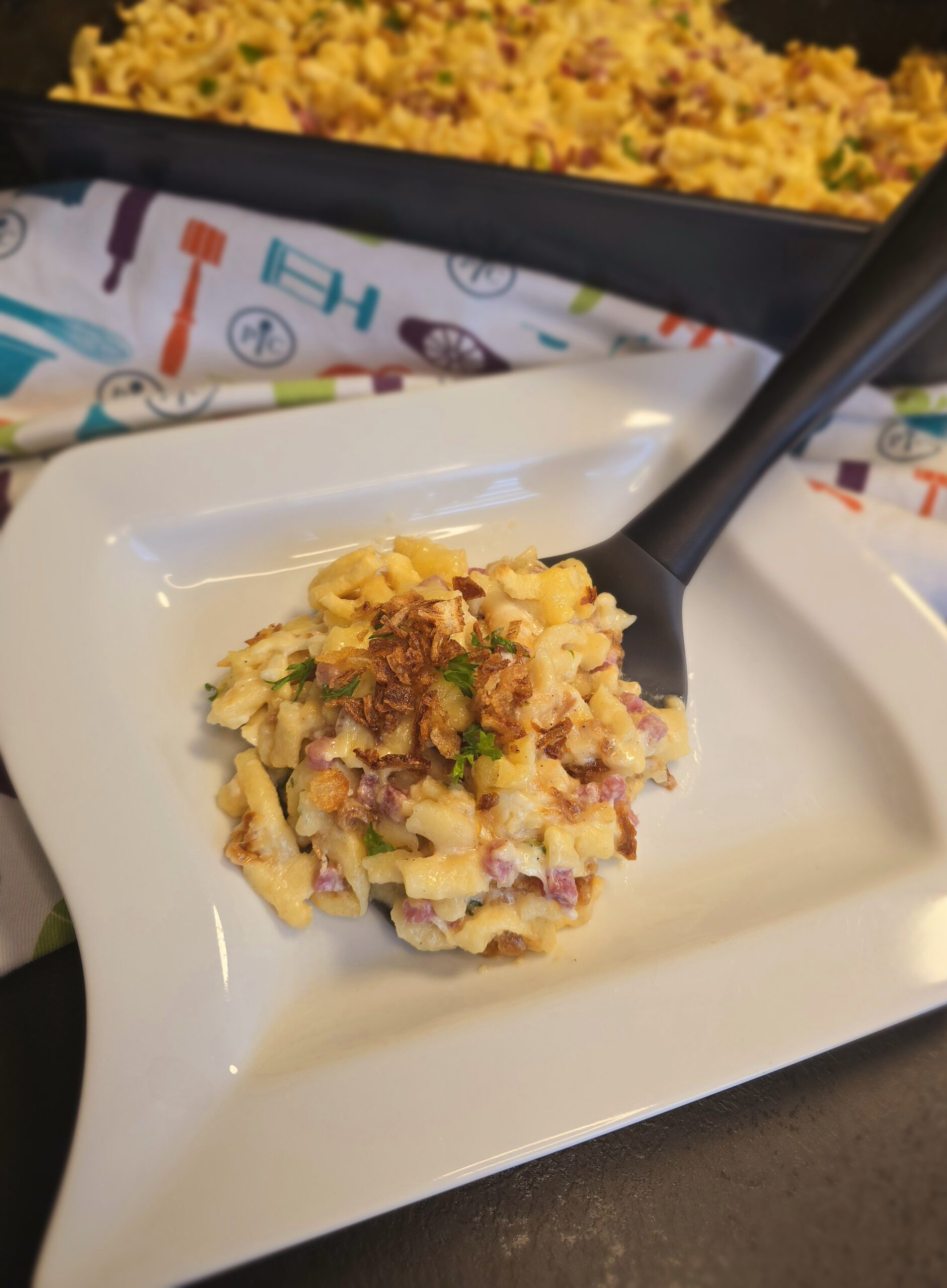 - Nach der Backzeit nach Wunsch mit Petersilie und Röstzwiebeln bestreuen und genießen