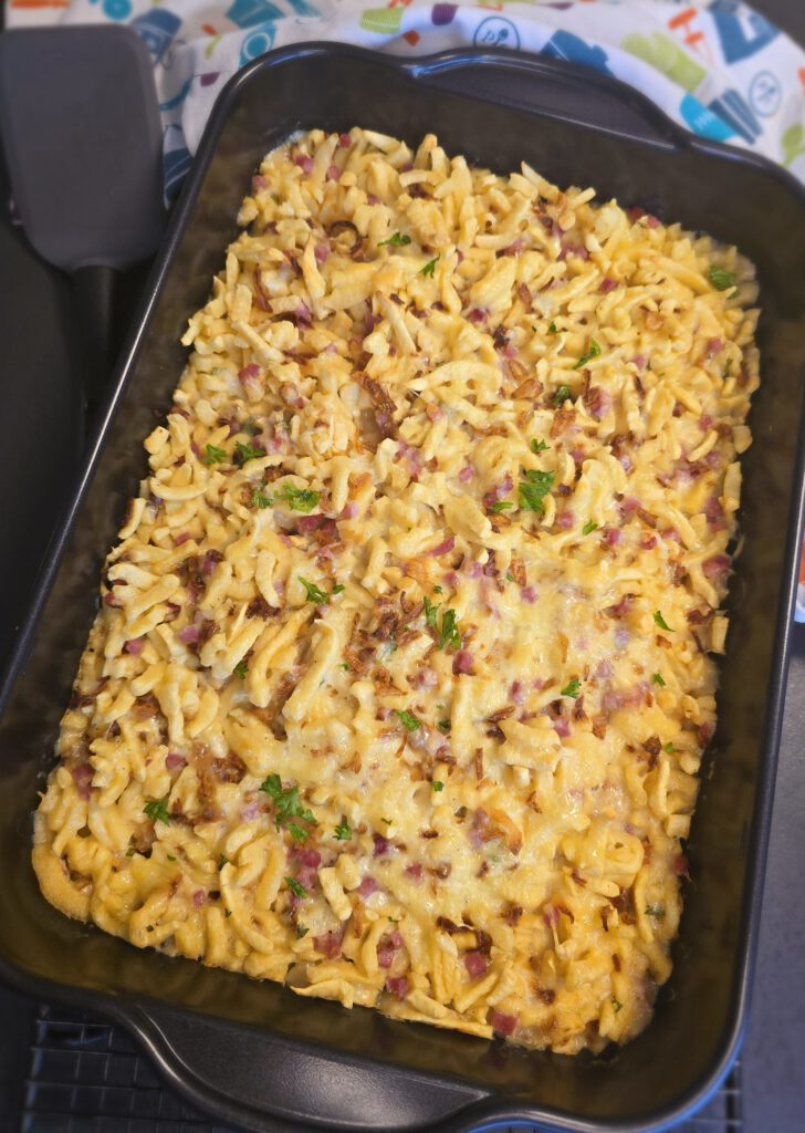 - Nach der Backzeit nach Wunsch mit Petersilie und Röstzwiebeln bestreuen und genießen