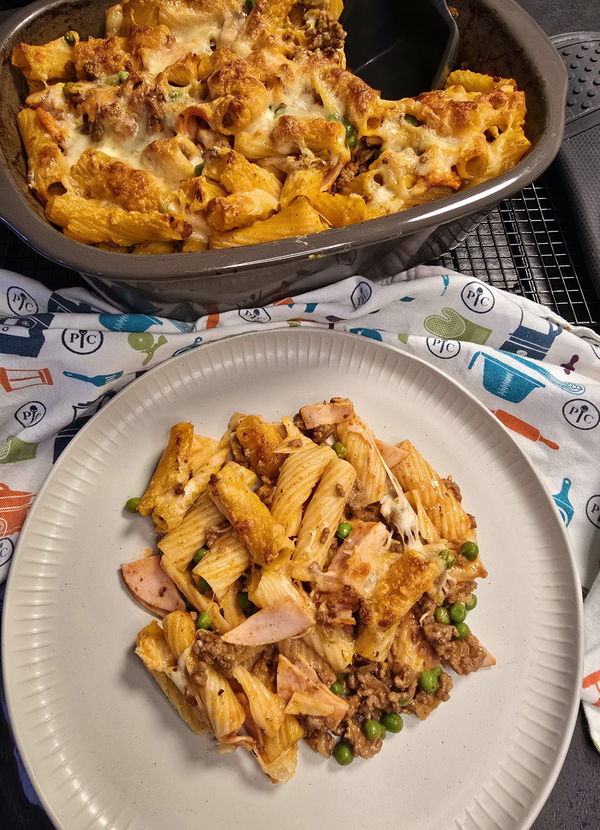 Ich hatte bei meinem Versuch 500 Gramm Rigatoni verwendet, das war etwas zu viel 😉 400 Gramm sind eine bessere Wahl.