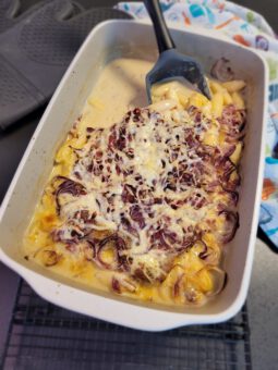 - Schupfnudeln in der Ofenhexe verteilen1 kg Schupfnudeln aus dem Kühlregal