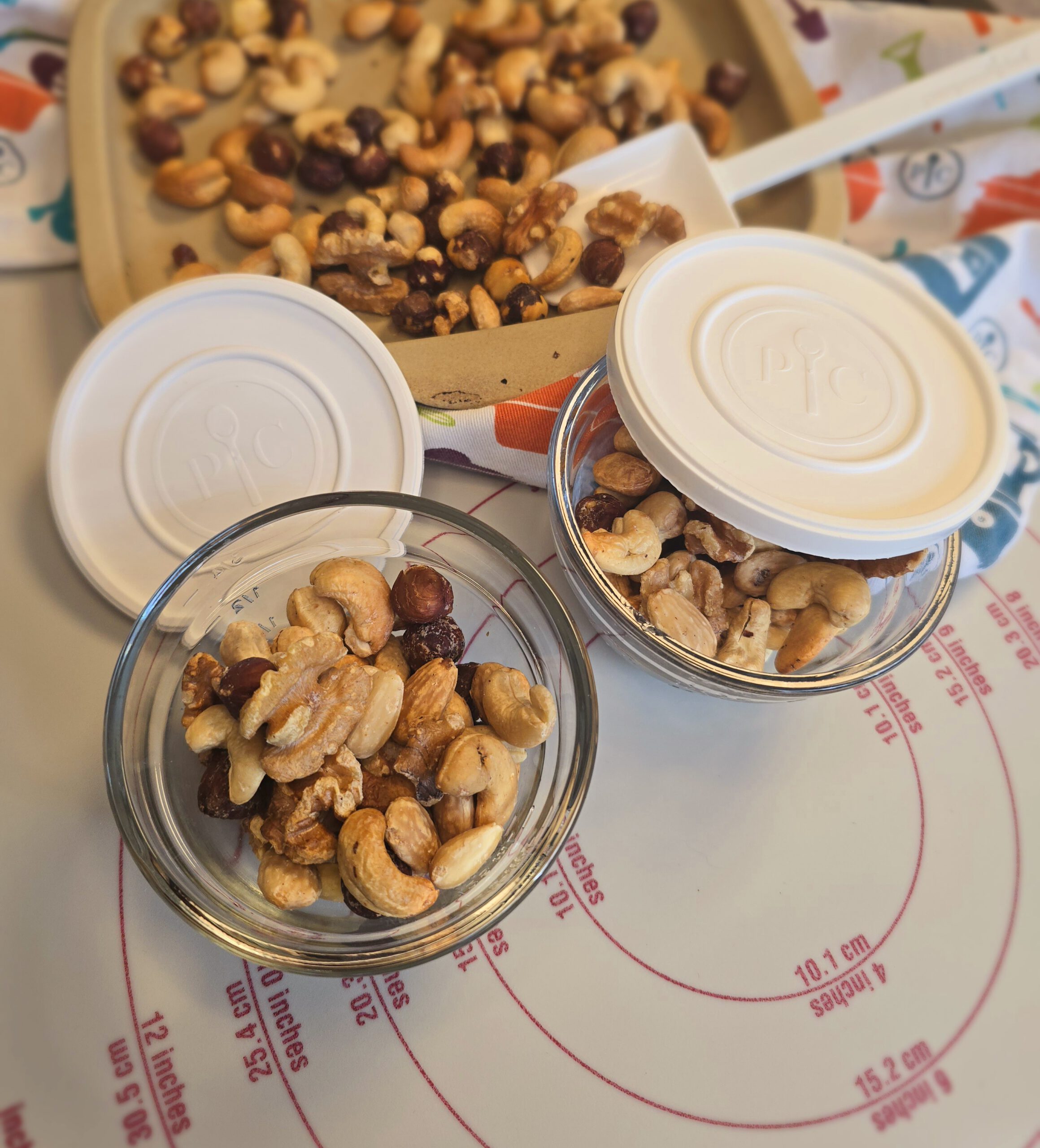 - Nüsse in die kleine Nixe geben.Salz und Wasser dazu geben und alles gut vermengen300 gr. Nüsse nach Wahl, etwa 1/2 TL Salz, 1,5 EL Wasser