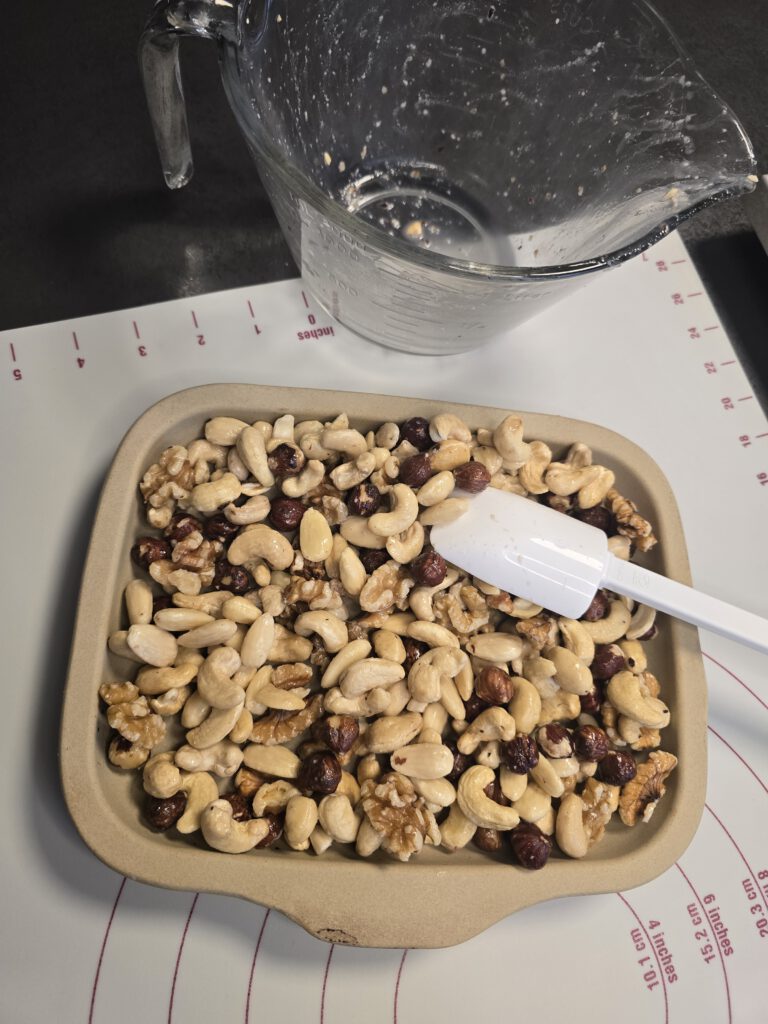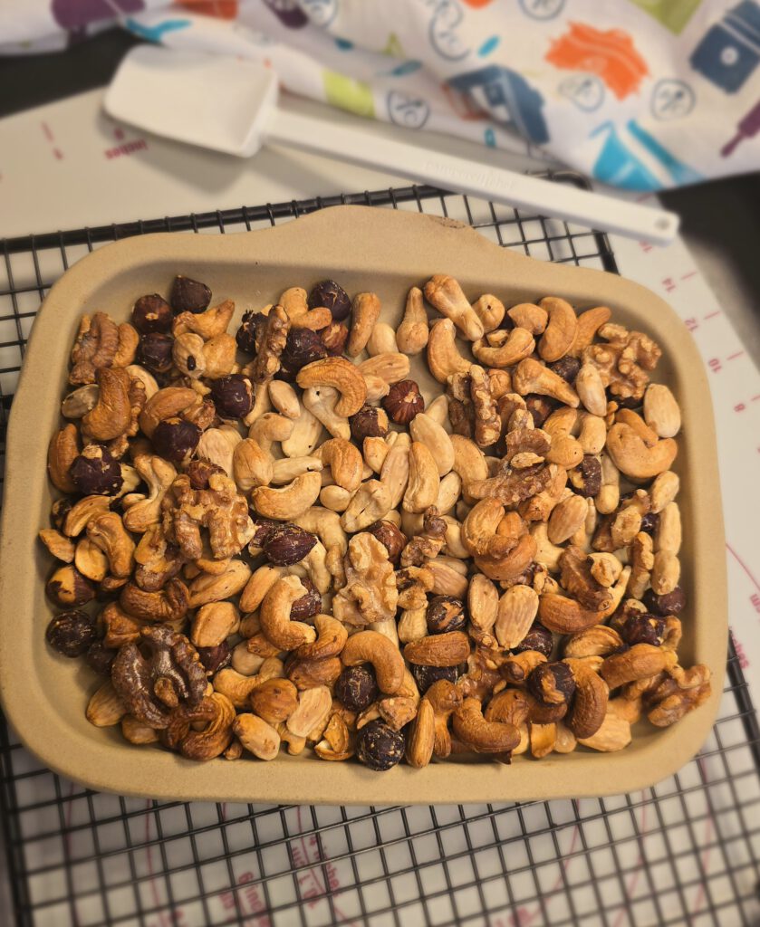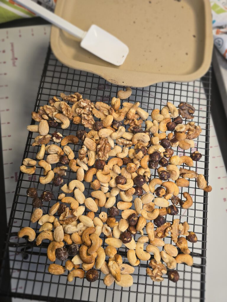 - Nüsse auf einem Kuchengitter auskühlen lassen