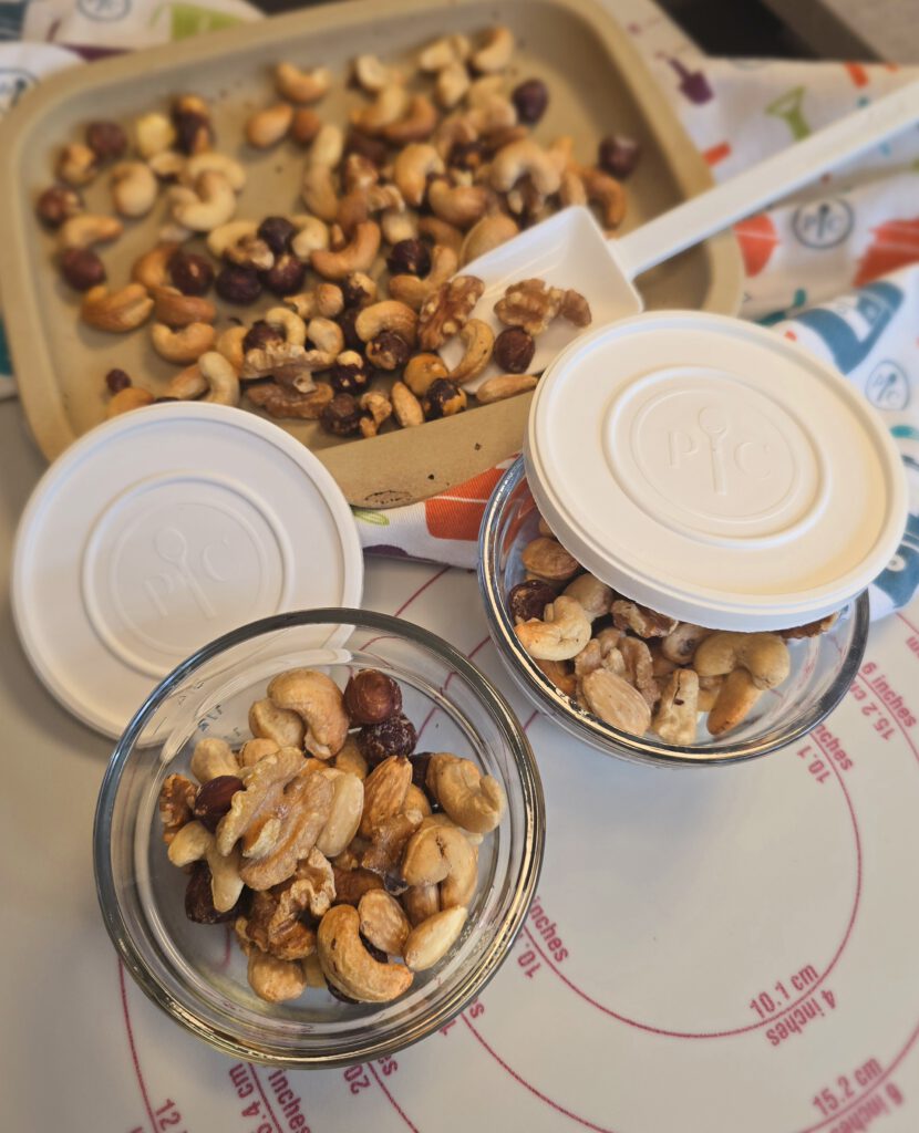 - Nüsse in die kleine Nixe geben.Salz und Wasser dazu geben und alles gut vermengen300 gr. Nüsse nach Wahl, etwa 1/2 TL Salz, 1,5 EL Wasser