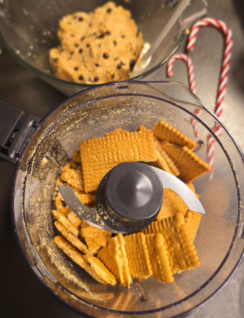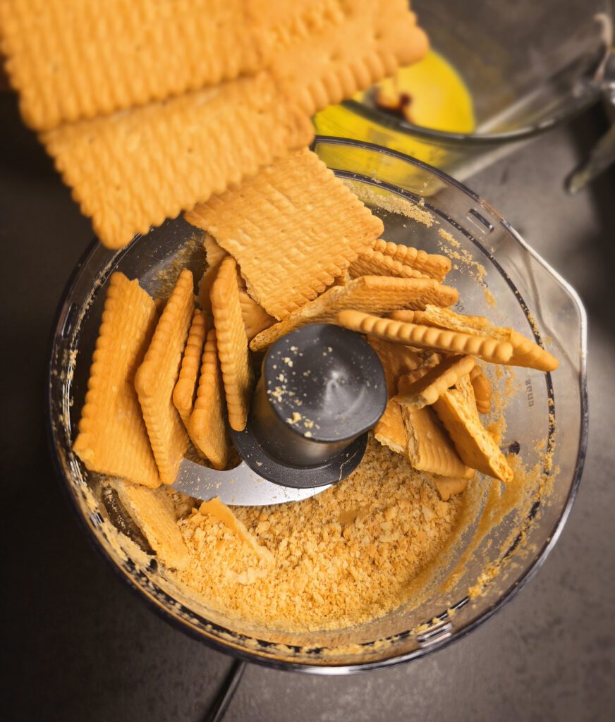 - 50 gr. Butterkekse in den Elektrischen Multi-Zerkleinerer "Up & Down" geben50 gr. Butterkekse