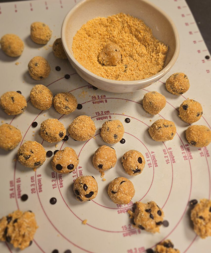 - Den Teig in etwa 15 gr. schwere Stücke aufteilen