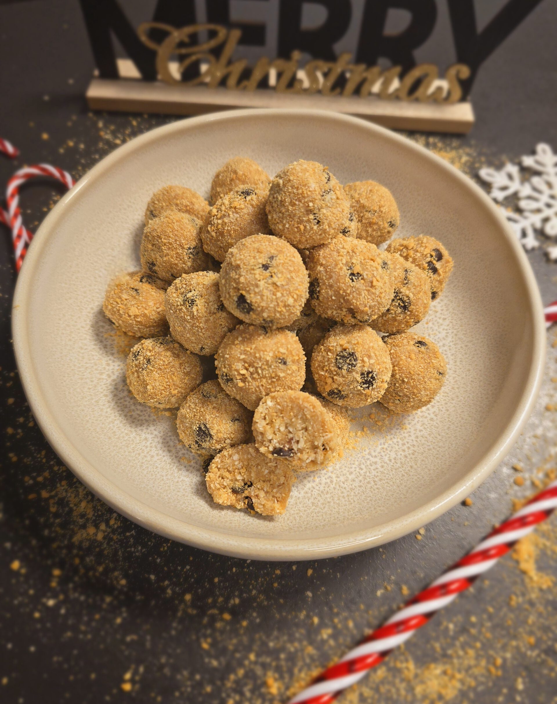 - Butterkekse, Schokotröpfchen und Kokosraspeln dazu geben100 gr. Schokotröpfchen Zartbitter, 150 gr. Kokosraspeln