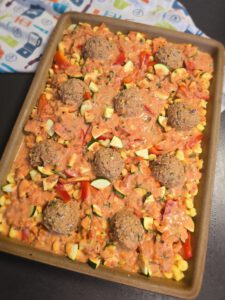 Für die Soße: Stückige Tomaten, Wasser, Cremefine, Gemüsebrühepaste, Ajvar, Salz, Pfeffer, Zucker und ital. Kräuter gut miteinander vermengenThermomix: 20 Skd. / Stufe 4 1 Dose stückige Tomaten, 100 gr. Wasser, 1 Fl. Cremefine zum Kochen 7% (Alternativ Sahne), 1 TL Gemüsebrühepaste oder Gemüsebrühepulver, 2 TL Ajvar mild, 1,5 TL Salz, 3 Prisen Pfeffer, 1 TL braunen Zucker, 1 EL ital. Kräuter TK