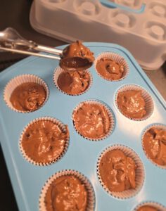 Teig mit dem Portionierer auf die Cupcakeform aufteilen