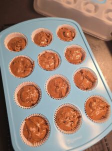 Backofen auf 180 Grad Ober- und Unterhitze vorheizen.Papierförmchen in die Cupcakeform legen