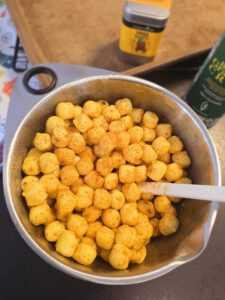 Gnocchis in die mittlere Edelstahlschüssel geben,Olivenöl, Salz und Frikka Flott dazu geben und alles gut vermengen 1 kg Mini-Gnocchis aus dem Kühlregal, 30 gr. Olivenöl, 1 TL Salz, 2 TL Frikka Flott