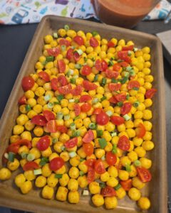 3 Frühlingszwiebeln, 200 gr. kleine Tomaten
