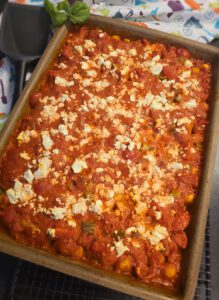 1 P. passierte Tomaten, 1 D. stückige Tomaten, 120 gr. Creme fraiche legere Kräuter, 3 TL Ajvar mild, 1 TL Gemüsebrühe / paste, 1 TL Salz, 1 TL Zucker, 1 TL Paprika edelsüß