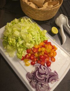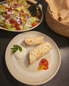 So kann nun alles zusammen serviert werden und jeder kann sich seinen Wrap nach Wunsch befüllen