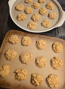 Butter, Zucker, Eier, Vanillinzucker, Backpulver, Nüsse, Salz, Haferflocken, Mehl, Zimt und Milch in den Mixtopf vom Thermomix gebenLinkslauf! 1 Min. / Stufe 4 100 gr. weiche Butter, 100 gr. brauner Zucker, 1 Ei, 1 P. Vanillinzucker, 1 gestrichener TL Backpulver, 60 gr. gehackte Haselnüsse, 1 Prise Salz, 130 gr. kernige Haferflocken, 150 gr. Dinkelmehl, 1 TL Zimt, 30 gr. Milch