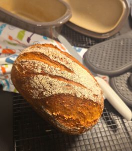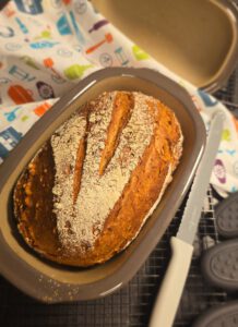 Teigling in den kleinen Zaubermeister legen.Deckel darauf und in den KALTEN Backofen stellen, auf einen Gitterrost unterste Schiene. Temperatur auf 235 Grad Ober- und Unterhitze einstellen.Backzeit 55-60 Minuten Nach der Backzeit direkt aus dem kleinen Zaubermeister nehmen