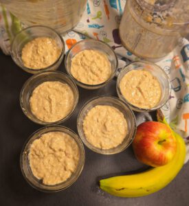 1 TL Zimt, 1 leicht gehäufter TL Backpulver, 100 gr. Haferflocken blütenzart, 150 gr. Dinkelmehl, 1 Prise Salz